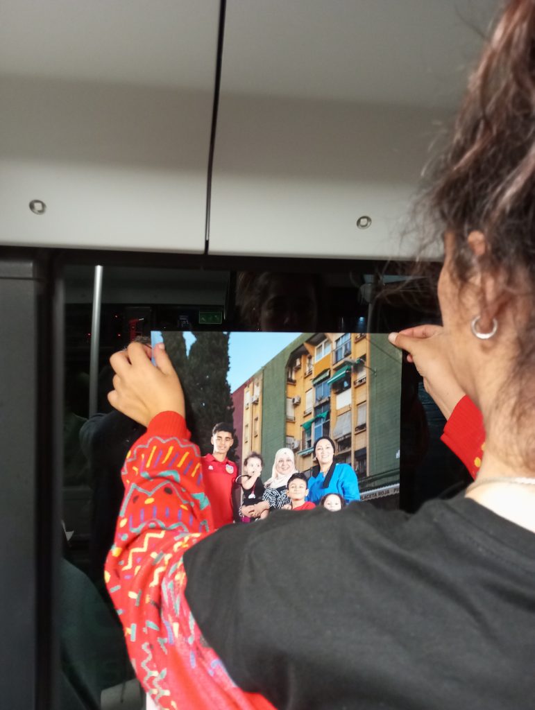 La segunda intervención, “Líneas conectadas”, lleva esta filosofía a la red de transporte público. Gracia a la colaboración imprescindible de Alsa, varias líneas de autobuses han sido intervenidas con imágenes tomadas en los distintos barrios. Ahora, los vecinos que usen el bus a diario no solo se desplazarán por la ciudad, sino que se reconocerán en ella. Los rostros y las escenas que habitan sus ventanas y pasillos son un reflejo de su propia realidad, creando un viaje íntimo y familiar a través de los trayectos cotidianos.